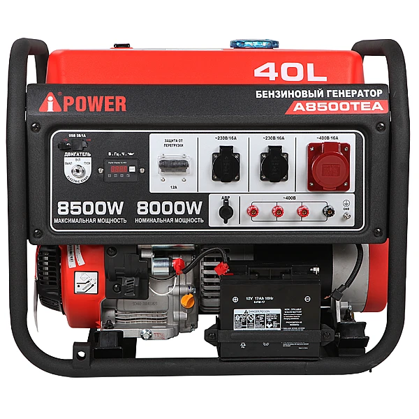 Индекс T в названии электрогенератора A-iPower A8500TEA означает, что агрегат подходит для питания трехфазных устройств, которым требуется напряжения 380-400В. Такую электростанцию, как правило, покупают под конкретного потребителя, например насос или станок, либо же после тщательного планирования схемы подключения с целью избежать перекоса фаз.