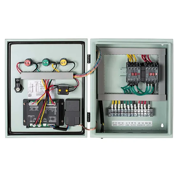 Блок АВР для дизельного генератора АМО 25А 380 В представляет собой электронное устройство, разработанное для обеспечения автоматического запуска источника энергии и последующего подключения потребителей при аварии в основной сети. Когда электросеть испытывает сбой или отключается, оборудование обнаруживает эту проблему и автоматически запускает дизель-генератор и переключает потребителей на генераторное питание, обеспечивая непрерывную работу электрооборудования.