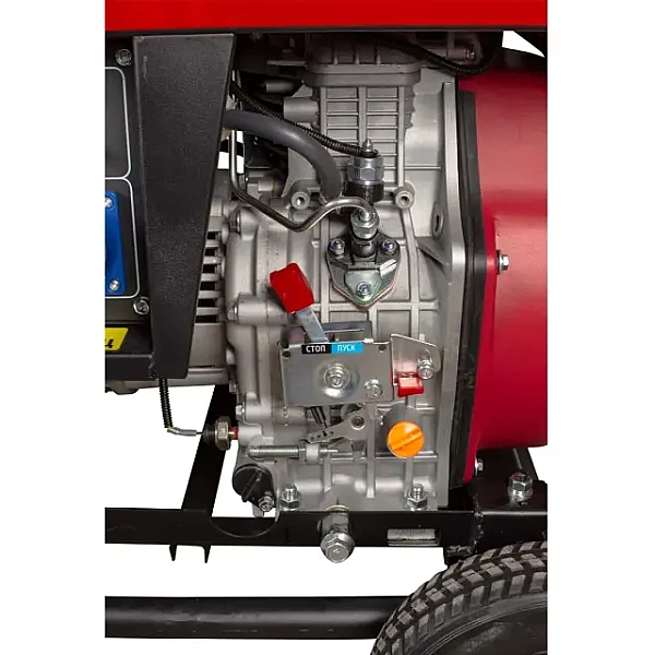 Дизельный генератор AMO ADG 5500E - автономная мобильная электростанция мощностью 5 кВт, которая подходит для выездной работы с однофазными инструментами, а также может закрыть все потребности небольшой мастерской или торгового объекта в электроэнергии. По сравнению с бензиновым, дизельный генератор отличается экономичностью и больше ориентирован на длительную непрерывную эксплуатацию.