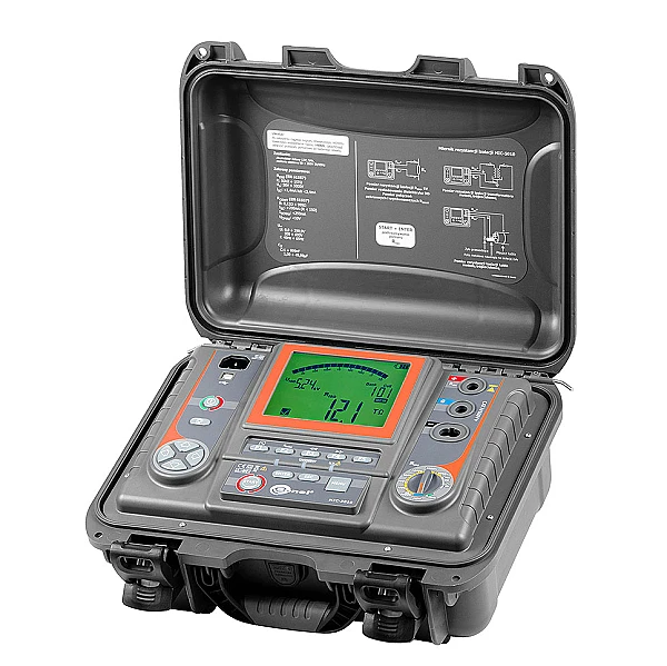 MIC-5010 – цифровой мегаомметр, предназначенный для испытания электрической прочности изоляции электроустановок систем электроснабжения, а также измерения сопротивления изоляции кабельных линий, проводов, обмоток трансформаторов, двигателей, других электро- и телекоммуникационных установок. Максимальное измерительное напряжение составляет 5000 В постоянного тока, а диапазон измеряемого сопротивления ограничен величиной в 15 ТОм. Установка трёх интервалов времени позволяет автоматически рассчитывать коэффициент абсорбции (увлажнённости), поляризации (старения) и коэффициент разряда диэлектрика. В процессе измерения сопротивления изоляции происходит измерение ёмкости. Электромагнитные помехи, благодаря встроенному цифровому фильтру, не влияют на результат измерений.