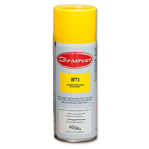 Высокотемпературный люминесцентный пенетрант «Элитест П71 (72)» на водной основе предназначен для нанесения на проверяемые детали для выявления поверхностных дефектов. В зависимости от необходимой чувствительности контроля пенетрант выпускается в двух вариантах:
